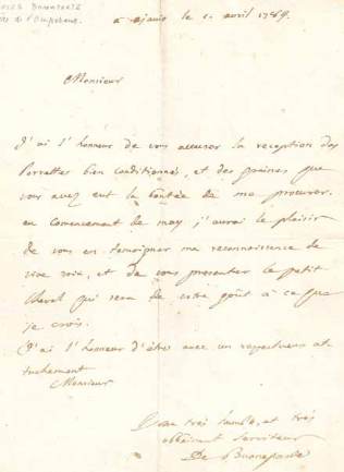 LAS « De Buonaparte », 1p grand in-8, Ajaccio, 1