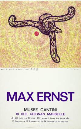 118 ERNST Max. AFFICHE LITHOGRAPHIÉE SIGNÉE. Marseille, Musée Cantini, 1971, 72 x 45,5 cm, sous