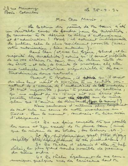 Dali, etc. et à la présence permanente de Guy Levis Mano et de Michaux dans ses lettres.