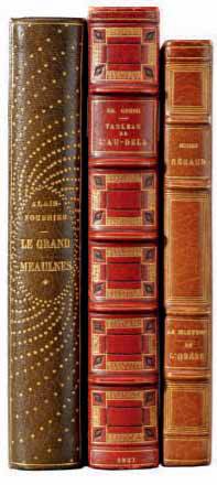 reliure à coins en peau chagrinée rouge. Dos à 5 nerfs portant le titre doré, filet doré sur les plats, tête dorée, couverture