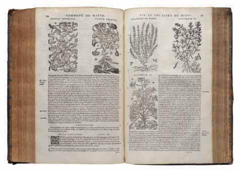 (2) f., 704 pp., pleines reliures de l’époque en veau porphyre. Dos à nerfs très ornés et dorés portant les pièces de titre