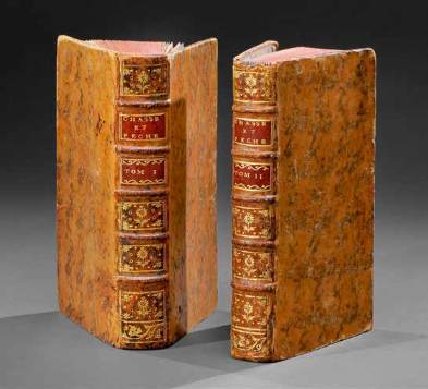 in-12, de (2) ff., XIV pp., (1) f., 391 pp. - (4) ff., 284 pp., (38) ff., pleines reliures de l’époque en veau marbré.