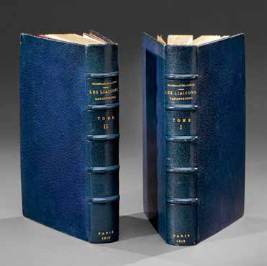 Deux volumes, in-8, pleines reliures en maroquin bleu nuit. Dos à nerfs portant
