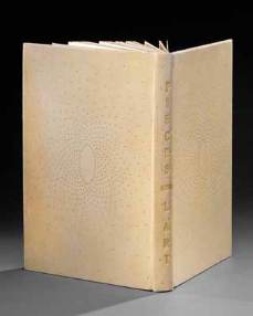 vélin ivoire. Dos lisse portant le titre doré à la chinoise. Semis en tourbillon de points dorés sur les plats, tête