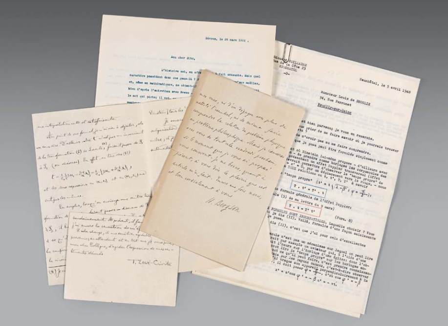 de la relativité et un désaccord théorique avec Einstein (1 p. in-folio dact\lographiée , trous de classeurs). Le