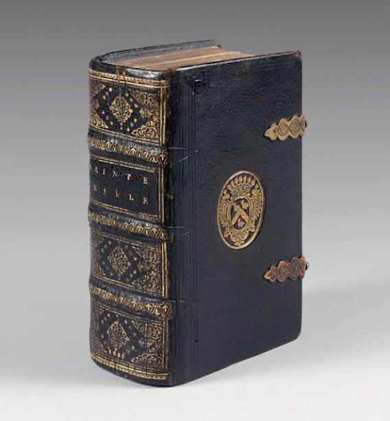 antiquées, fermoirs métalliques modernes ou rapportés, discrètes restaurations sur les plats, mouillures