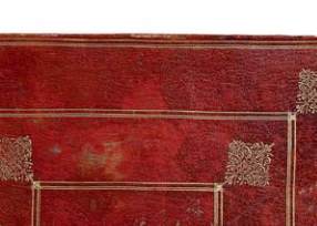 –– Reliure en maroquin rouge, dos à nerfs cloisonnés et Áeuronnés, triple encadrement de triple Àlet doré