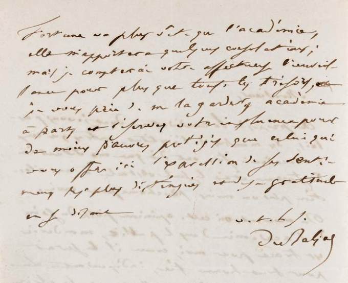 De 1839 à 1849, Balzac brigua à plusieurs reprises les suͿrages de l’Académie, mais, hormis en 1839 o il s’eͿaça