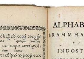 Les alphabets grec, hébreux, grantha, perse, tibétain, éthiopien, arménien, birman, devanagari (« brammhanicum »),