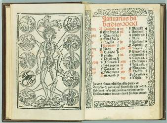 Une vignette à l’aigle sur le titre, une figure anatomique au v°, DIX-HUIT GRANDES FIGURES GRAVÉES sur bois