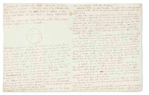salissures et traces de cire rouge. Esquisse d’un baril d’huile au milieu de la deuxième page.