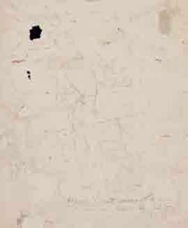 Dessin original au crayon, légendé, au verso du fragment d’une carte géographique