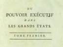 Du pouvoir exécutif dans les grands Etats