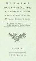 Rare édition originale du mémoire adressé par les bourreaux Charles-Henri Sanson et son fils à