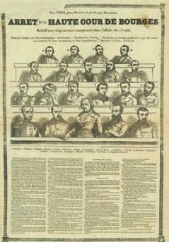 On y trouve deux arrêts de la Haute-Cour de Bourges, contre les révolutionnaires Barbès, Blanqui, Raspail au sujet de l’attentat commis le