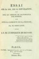 Essai sur la loi, sur la souveraineté, et sur la liberté de manifester ses pensées, ou sur la liberté