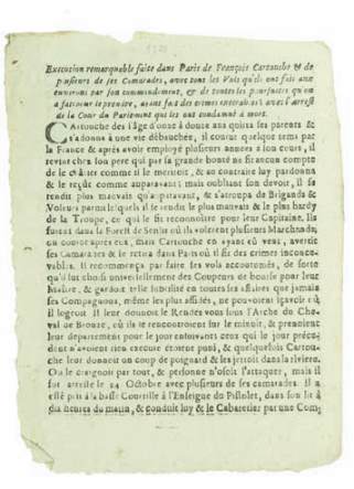 - Une complainte sur la vie de Cartouche, imprimée recto-verso.