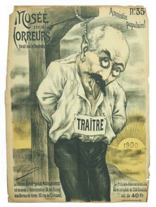 Rare suite complète des 52 grandes caricatures antidreyfusardes en couleurs de Victor Lepneveu formant le redoutable “Musée