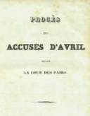 Le procès des émeutes populaires du mois d'avril 1834, qui eurent lieu à Lyon (300 morts), Paris