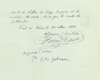 On a relié en tête un exemplaire du contrat entre Gobineau et les Firmin Didot, daté du