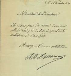 “J.B. Troppmann”, 28 novembre 1869, au Directeur de la prison de Mazas