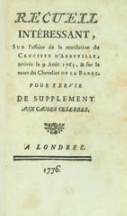 arrivée le 9 août 1765, & sur la mort du Chevalier de La Barre. Pour servir de supplement