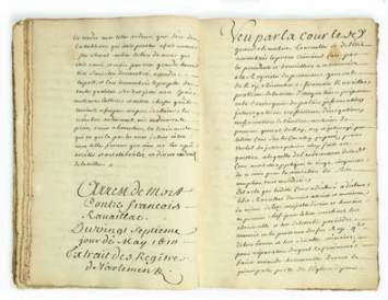 Manuscrit, un volume in-fol. de 7 cahiers cousus formant 220 pages (trace de reliure).