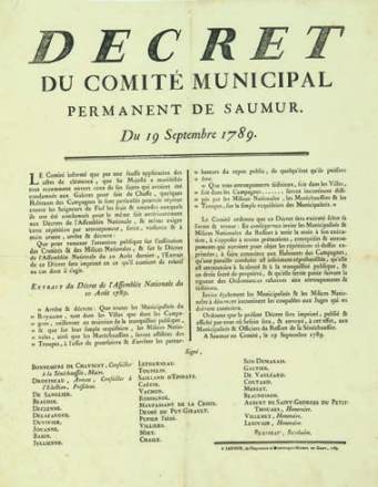 Décret du comité municipal permanent de Saumur. Du 19 septembre 1789.