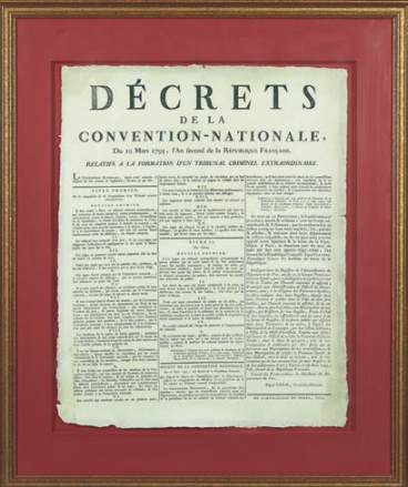 Création du Tribunal révolutionnaire chargé de juger les “attentats contre la liberté, l’égalité, l’unité, l’indivisibilité de la république, la sûreté