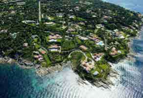 L’ensemble sur un parc verdoyant de 7.000 m² en terrasses face à la mer. 11 chambres. Plage privée. Piscine. Réf : STZ-0128-PHB