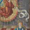 architectural peint, duquel se détachent deux guirlandes de feuilles et de fleurs