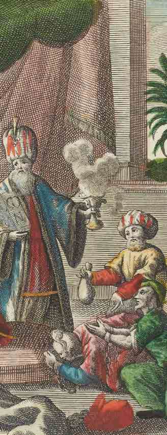 Chaque gravure représente un monarque recevant des présents. Sur le bas figure
