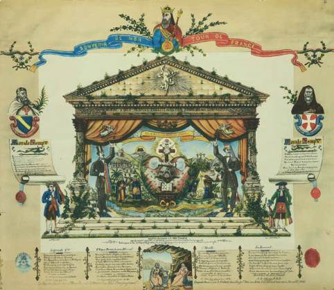 le Sage, de Jacques de Mollay et du père Soubise avec la représentation de nombreux emblèmes et