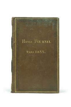 roulette à froid encadrant les plats avec, sur le premier, en lettres dorées : “Henri Fournel, mars 1833”, tranches marbrées