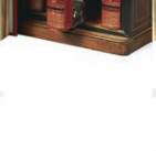 La bibliothèque en palissandre, ornée de listels de bois clair et dotée d’une porte