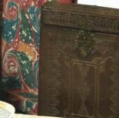 - une boîte à deux compartiments fabriquée à l’aide d’éléments de reliures anciennes,