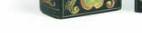 - une boîte-étui romantique en cuir-de-Russie prune, ornée d’un décor doré et mosaïqué en plusieurs tons,