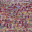 , etc. Le tout est contenu dans un cadre en bois peint.