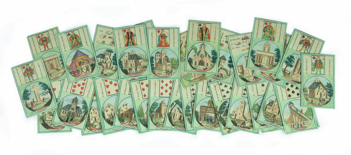 rouleaux de papier. A chaque tas est assigné le nom d’un saint imprimé en latin :