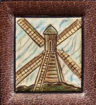 cabochons peints aux angles sur le premier plat ; cartouche peinte