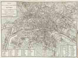 Première édition de ce guide exhaustif de Paris, sous forme de dictionnaire. “Le lecteur trouvera [dans ce livre] tout ce qu’il peut désirer, relativement à ses goûts & à ses vues. Le politique, l’homme de cour, le ministre, le magistrat, le militaire, le philosophe, le littérateur, l’artiste, le négociant, le marchand &c. y puiseront comme dans une source abondante des richesses infnies, présentés par des modèles sans nombre, & les secours prévus & imprévus dont ils auront besoin dans leurs travaux & études différentes” (préface). Il offre également des renseignements sur la banlieue.