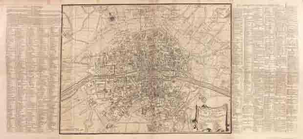 Ce plan dérive directement du petit plan de Jouvin de Rochefort de 1676. La première édition date de 1714. Pour cette édition vers 1735, la topographie a été mise à jour. Y fgurent les hôtels de Bourbon et de Lassay (construits à partir de 1722) ou le pont des Tuileries ; la porte de la Conférence, démolie en 1730, ne fgure pas. De chaque côté du plan, table alphabétique des rues et table alphabétique, historique et chronologique, donnant les dates de construction ou de fondation de bâtiments et ordres religieux.