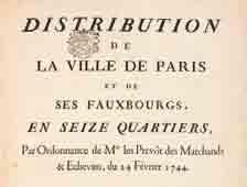 DELAGRIVE (Jean, abbé). Distribution de la ville de Paris et de ses fauxbourgs, en seize quartiers , par ordonnance de Mrs les prévot des marchands & échevins, du 24 février 1744. Paris, P.G. Le Mercier, 1744.