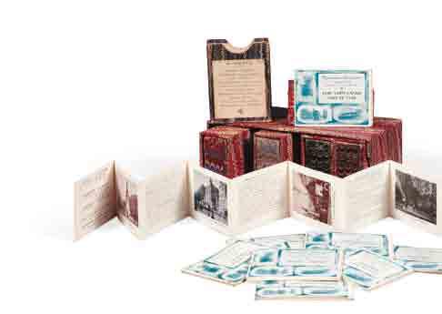 50 itinéraires imprimés et pliés en accordéon (60 x 8 conservés dans 5 étuis de papier marbré de l’époque une étiquette imprimée, le tout dans un étui modern