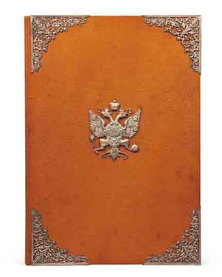 Exemplaire de présent, en maroquin citron du temps, avec les armes de Russie en argent, apposées sur le premier plat.