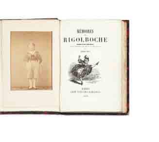 - [BLUM et HUART]. Mémoires de Rigolboche . 1860. Petit in-12, demi-chagrin époque. Photographie de Petit et Trinquart contrecollée en frontispice. Mention de troisième édition.