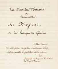 [ARGOT]. La Manière d’entraver ou rouscailler la bigorne. Ou la langue des grinches. [Dictionnaire Argot-français puis français-argot].