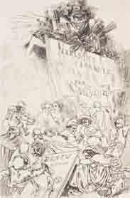 C’est la première illustration exécutée par Rops pour son ami Delvau, “un beau frontispice représentant une scène de beuverie à la manière des eaux-fortes dont il ornera plus tard les publications illicites de Poulet-Malassis” (Fayt).