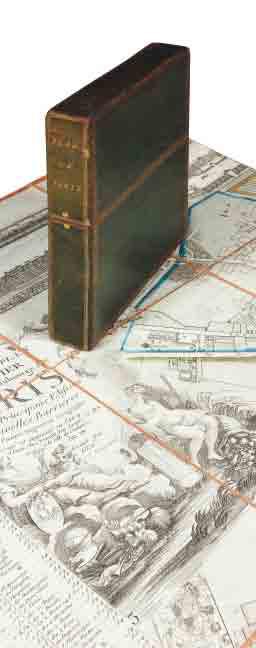 En 45 sections montées sur toile et pliées, formant une carte de 1080 x 1485 mm, sous emboîtage de maroquin vert de l’époque, roulette dorée encadrant les plats, titre en lettres dorées au dos, étiquette de l’éditeur au dos de la carte.
