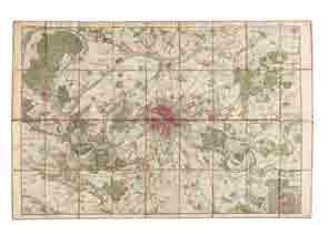 En 36 sections montées sur toile et pliées, formant une carte de 670 x 990 mm, sous étui de papier marbré de l’époque.